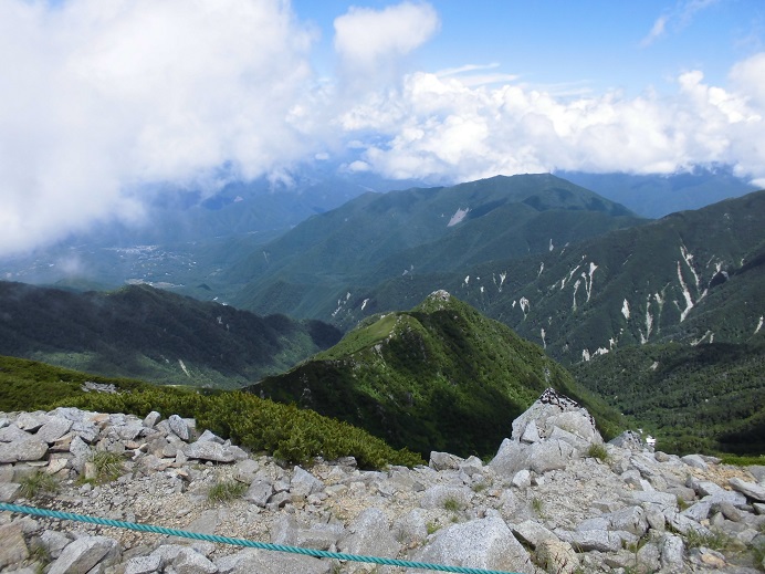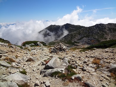 駒ヶ岳は中央アルプスの一番高い山で、標高2956m。2600mまではロープウエイで登れますが、その後は足で急な岩場を登ることになります。